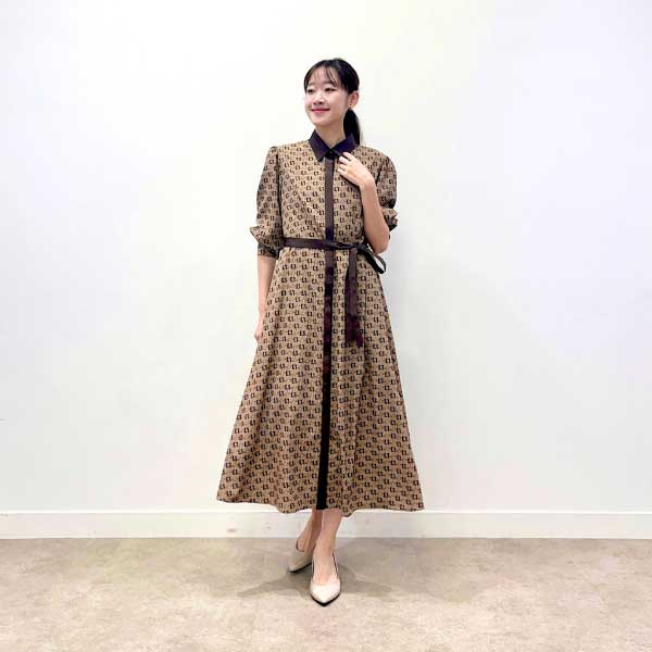 目を惹く通勤ワンピース。