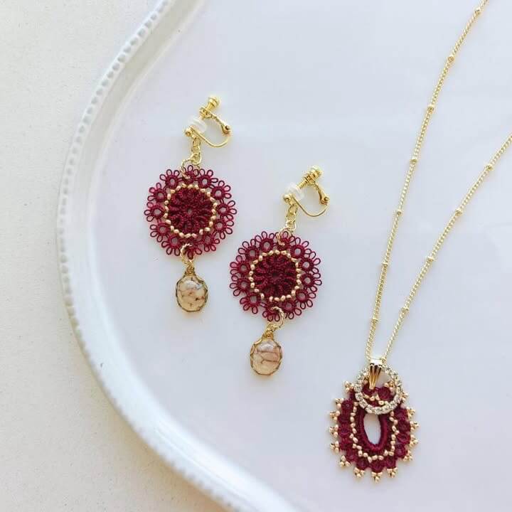 ヨーロッパで伝統的に親しまれているタティングレースの技法を使って、アクセサリーを製作しています。