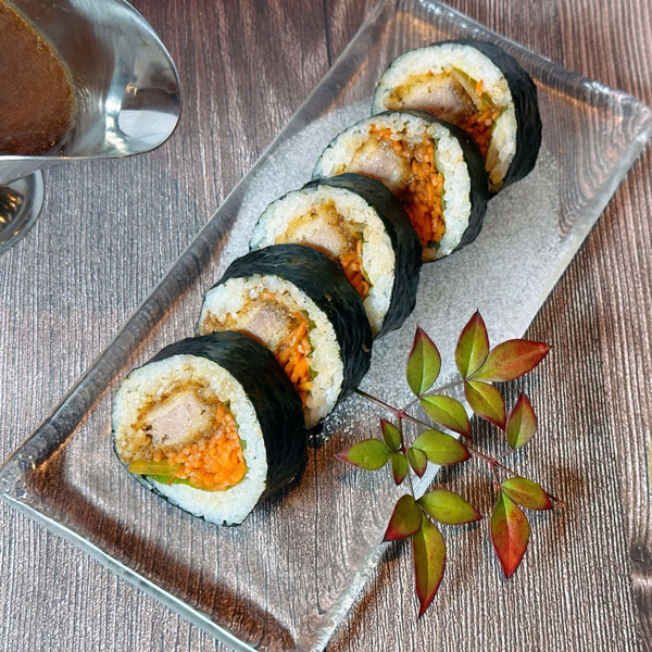 【待望の市販用が登場!】 受験生のお母様の声から誕生した、縁起の良い「勝ロール」。国産豚ヒレカツ、大葉、特製ソース、コクのあるマヨネーズを、ゴマ入りの酢飯でふんわり巻いた看板メニューです。